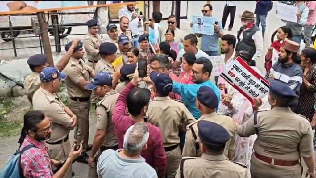 सुरक्षा की दृष्टि से पुलिस बल पहले से ही तैनात था। जैसे ही प्रदर्शनकारी विधायक के आवास के समीप पहुँचे, पुलिस ने कॉलोनी के मुख्य गेट को बंद कर दिया। आगे बढ़ने से रोके जाने पर प्रदर्शनकारियों ने गेट के बाहर ही धरना देना शुरू कर दिया और अपनी मांगों को लेकर जमकर नारेबाजी की।
