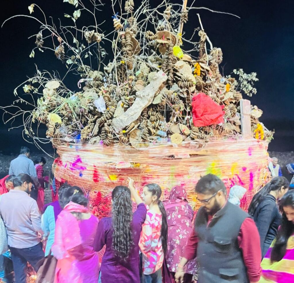 धार्मिक अनुष्ठान: महिलाओं ने पारंपरिक वेशभूषा में होलिका की परिक्रमा की और सुख-समृद्धि की कामना की।